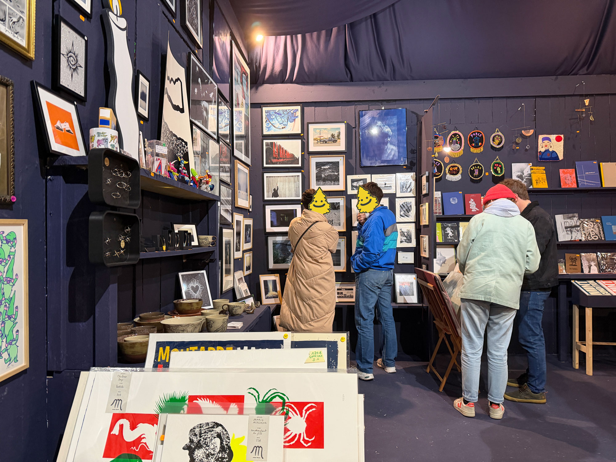 C’était le marché de Noël de tous les superlatifs au CCGP les 13 et 14 décembre 2025 : 80 m² d’artistes (quasi) bio, (surtout) précaires et (presque) en bonne santé, venant de toute la France. Des sérigraphies, photographies, fanzines/éditions, peintures et autres productions 100 % extraites par intelligence artisanale et garanties sans larmes de Ouïghours.